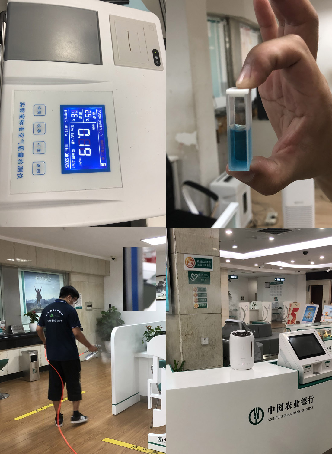 中國農業銀行浙江總部因為裝修好,加上由于人流量大,內部空氣不太流通,所以對其進行總部進行殺菌消毒除異味/新裝修TVOC等來提升其總部的空氣質量,并且消除裝修造成的各種TVOC和消除各種異味。